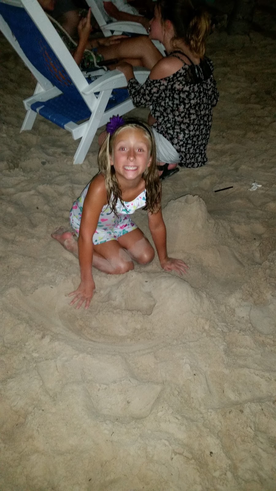 On the 4th or 5th night there we decided to go out just the four of us for a fun evening. There was a really cool restaurant down the street from our condo called the Hang Out. It had a foam pit, sand mountain, tunnels, bands playing,and a school bus that served ice cream. We had to wait for a while to be seated which was fine because the kids could play. Once we sat down to eat dinner the dj would come over the intercom while the band was playing and say something like "Are there any mom's out there tonight.....Get up and dance". So I did. Lauren was so embarrassed. "Mom, people are eating you can't just dance here by yourself next to the table". I told her she was lucky I wasn't dancing on the table! We all got into it after a while. It was a really fun night.